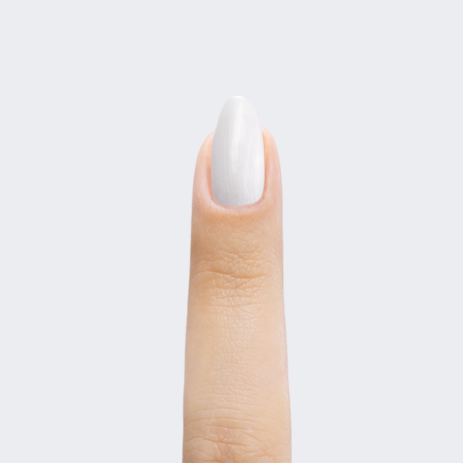 White. Pearl finish. Opaque. Cool undertone.